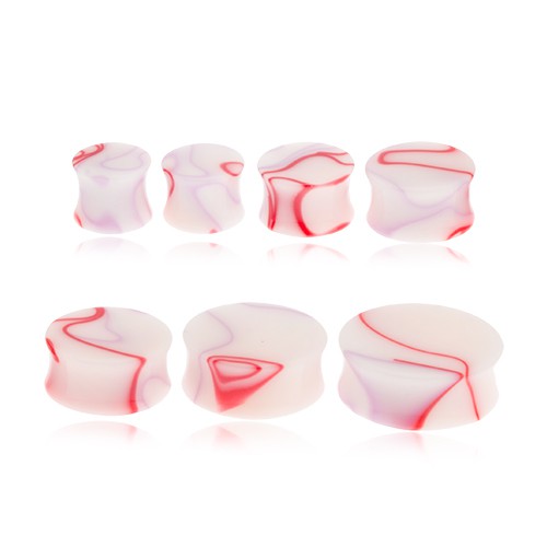Popis produktu Akrylový sedlový plug do ucha - bílý s červeno-fialovým mramorovým motivem - Tloušťka : 14 mm