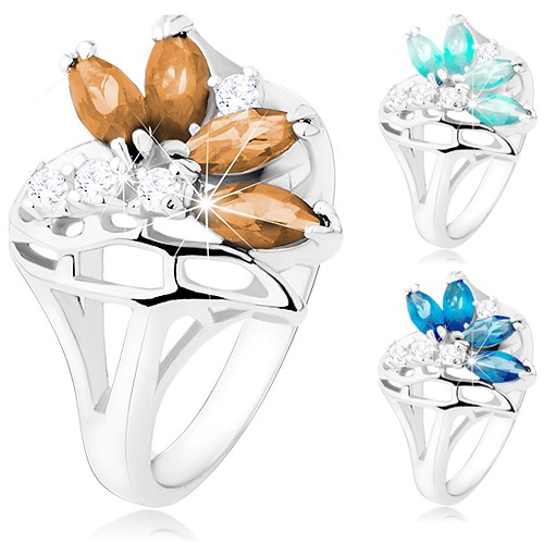 Top produkt Blýskavý prsten s rozdělenými rameny, čiré a barevné zirkony, stuha - Velikost: 51, Barva: Tmavomodrá kvalitní značky Šperky Eshop za přívětivou cenu 195 CZK Kč. Zobrazit více »