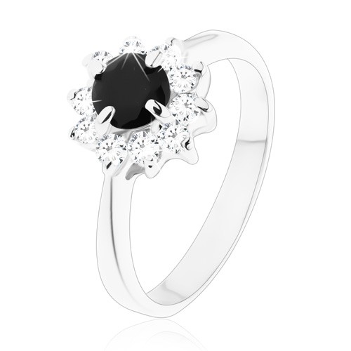 Popis produktu Blýskavý prsten s úzkými rameny, kulatý černý zirkon s čirým lemováním - Velikost: 56