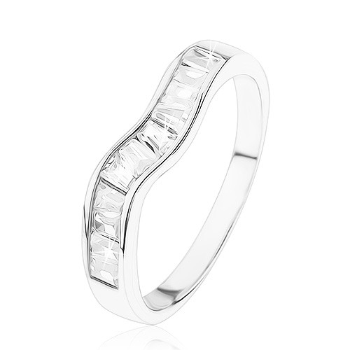 Popis produktu Blýskavý stříbrný prsten 925, zvlněná linie, čiré zirkonové lichoběžníky - Velikost: 54