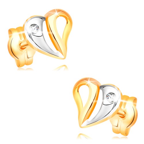 Popis produktu Briliantové náušnice ve žlutém a bílém 14K zlatě - srdce s výřezy a diamantem