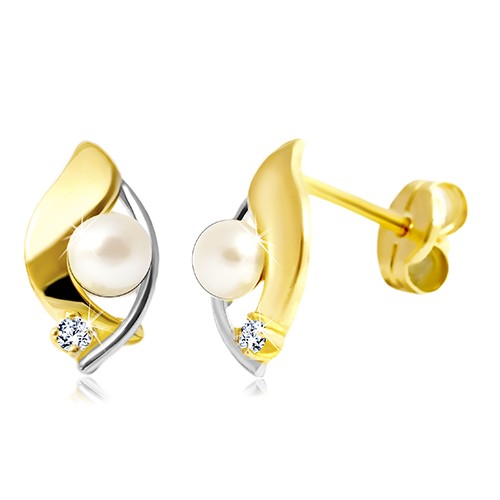Briliantové náušnice ze 14K zlata, dvoubarevné zrnko, čirý briliant a bílá perla od originálního výrobce Šperky Eshop - tento artikl nepropásněte v právě probíhající akci za 4 080 CZK. Upozorňujeme, že nabídka má omezenou platnost. Utraťte minimálně Kč a DOPRAVU ZCELA ZDARMA máte v kapse. Přejeme vám příjemné nakupování.