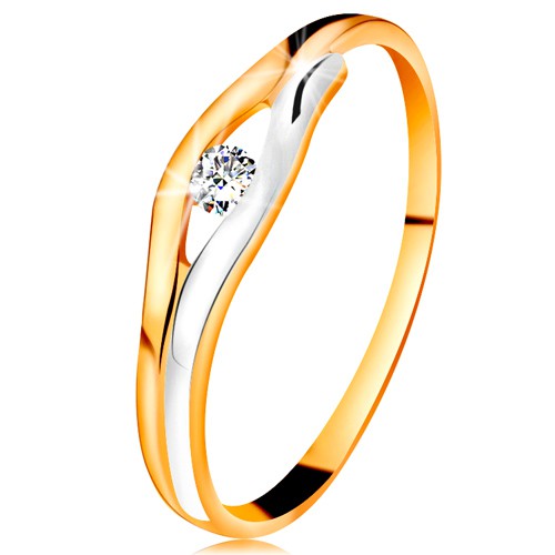 Popis produktu Briliantový prsten ve 14K zlatě - diamant v úzkém výřezu, dvoubarevné linie - Velikost: 59