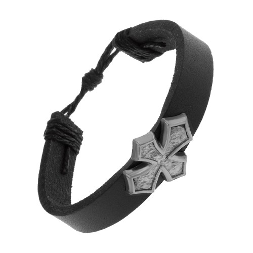 Popis produktu Černý náramek ze syntetické kůže, kříž s rozšířenými rameny