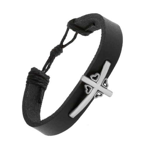 Popis produktu Černý náramek ze syntetické kůže, kříž se čtyřmi obrysy srdíček