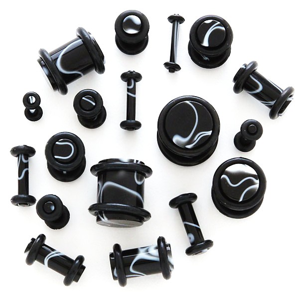 Popis produktu Černý plug do ucha - bílé vlnky - Tloušťka : 3 mm