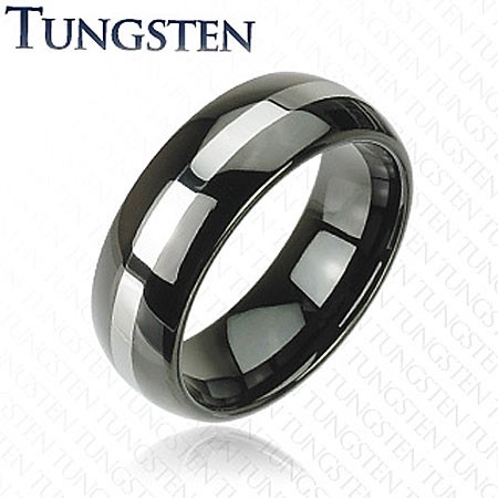 Popis produktu Černý prsten z wolframu, pás stříbrné barvy, zaoblený povrch, 8 mm - Velikost: 67