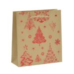Popis produktu Dárková taška z papíru - hnědá - červená barva, vánoční motiv, šňůrky