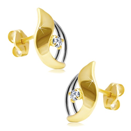 Diamantové náušnice ve 14K zlatě - zářivý čirý briliant ve dvoubarevné kapce