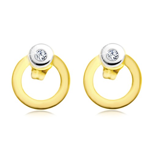 Diamantové náušnice ze 14K zlata - zářivý čirý briliant, dvoubarevný kroužek