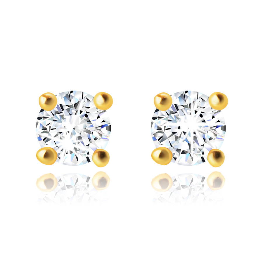 Diamantové náušnice ze žlutého 585 zlata - briliant čiré barvy v kotlíku