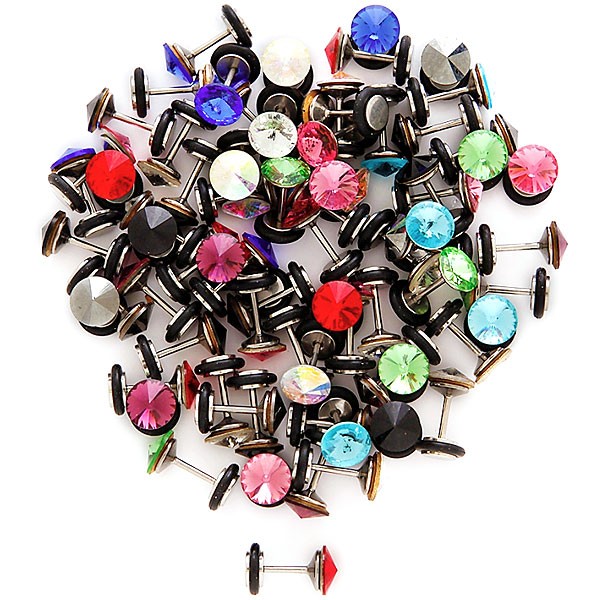 Falešný ocelový plug do ucha s barevnými zirkony.S pomocí našeho katalogu nakoupíte pohodlně z mobilu, tabletu nebo od počítače. Přejeme vám příjemné nakupování.
