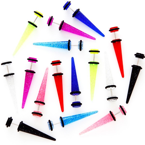 Popis produktu Falešný taper do ucha se třpytkami - Barva piercing: Zelená
