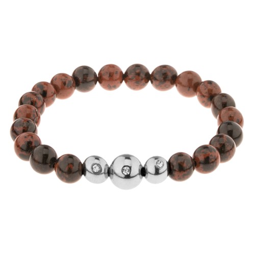 Popis produktu Hnědo-černý elastický náramek, kulaté korálky z přírodního kamene a oceli