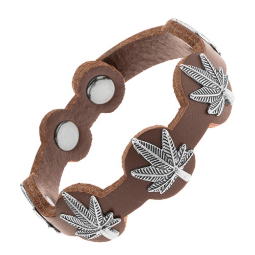 Hit poslední doby Kožený náramek tmavě hnědé barvy, patinované listy marihuany z oceli od kvalitního výrobce Šperky Eshop nyní za cenu 130 CZK Kč. Zobrazit více »