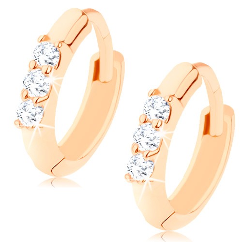 Popis produktu Kruhové 14K zlaté náušnice se třemi vsazenými třpytivými brilianty