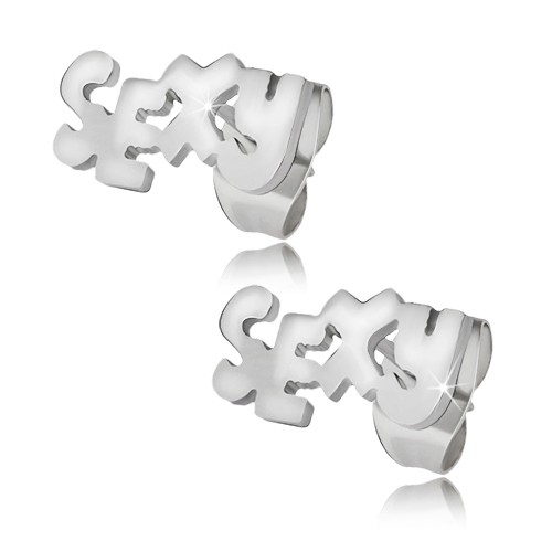 Náušnice z chirurgické oceli, lesklý stříbrný povrch, nápis SEXY, puzetky.Doporučujeme také ostatní produkty z nabídky e-shopu. Už se těšíte na svoji objednávku?