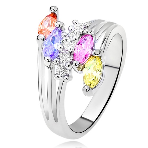 Hit poslední doby Lesklý prsten - barevné zrníčkovité kamínky, rozvětvená ramena, čirá linie - Velikost: 56 pocházející od značky Šperky Eshop výhodně za 89 CZK Kč. Zobrazit více »