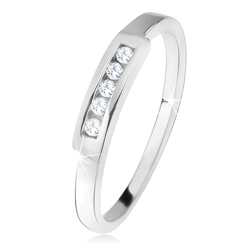 Popis produktu Lesklý prsten s linií čirých zirkonů, broušený pásek, ze stříbra 925 - Velikost: 58