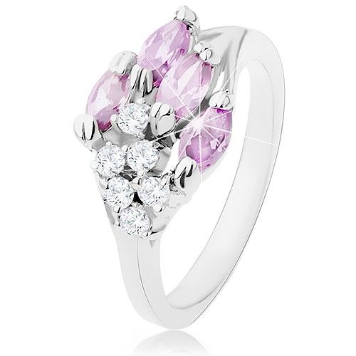 Nabídka pro vás: Lesklý prsten stříbrné barvy, fialová zrnka, kulaté čiré zirkony - Velikost: 55 značky Šperky Eshop za výhodnou cenu 195 CZK Kč. Zobrazit více »