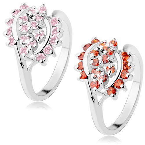 Popis produktu Lesklý prsten stříbrné barvy zdobený broušenými zirkonky, lesklé oblouky - Velikost: 52, Barva: Oranžová