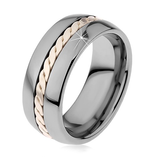 Popis produktu Lesklý prsten z wolframu s pleteným vzorem stříbrné barvy, 8 mm - Velikost: 66