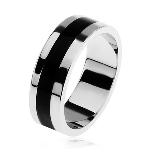 Popis produktu Lesklý stříbrný prsten 925, černý glazovaný pásek uprostřed - Velikost: 64