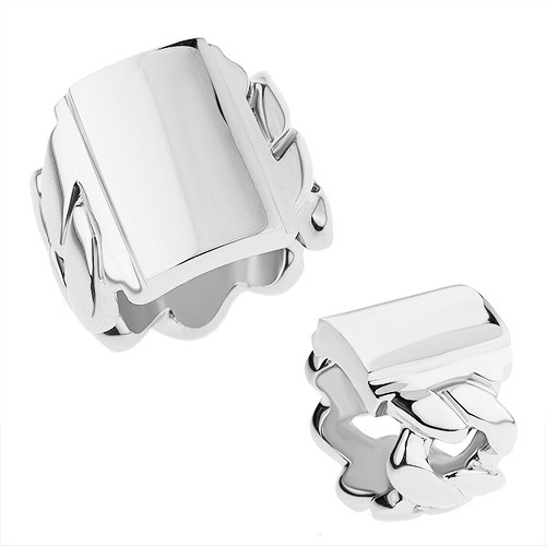 Mohutný prsten z chirurgické oceli s motivem řetězu, lesklý obdélník - Velikost: 62