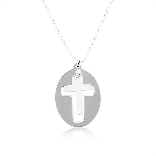 Náhrdelník ze stříbra 925 - lesklý ovál s matným křížkem uprostřed