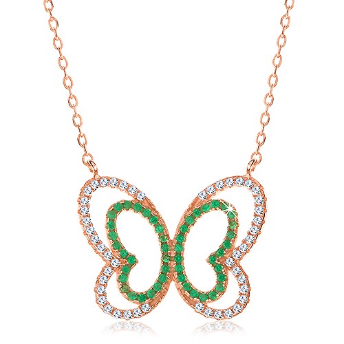 Popis produktu Náhrdelník ze stříbra 925, měděný odstín, třpytivá zeleno-čirá kontura motýla