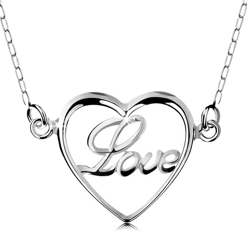 Popis produktu Náhrdelník ze stříbra 925, řetízek a přívěsek - tenký obrys srdíčka, nápis Love