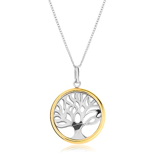 Popis produktu Náhrdelník ze stříbra 925 s dvoubarevným přívěskem - lesklý strom života v kruhu
