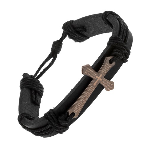 Unikátní Náramek z černé umělé kůže a šňůrek, velký lesklý kříž s modlitbou od známé značky Šperky Eshop nyní za cenu 97 CZK Kč. Zobrazit více »