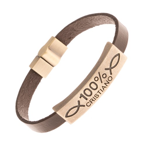 Náramek z umělé kůže hnědé barvy, známka s nápisem 100% CRISTIANO od top značky Šperky Eshop - tento produkt objednáte po slevě za 144 CZK. Upozorňujeme, že nabídka má omezenou platnost. Oblíbený bonus, BEZPLATNÉ poštovné a balné, je poskytováno pro objednávky nad Kč. Udělejte si radost.
