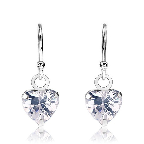 Náušnice, stříbro 925, čiré zirkonové srdíčko s broušeným povrchem, afro háček