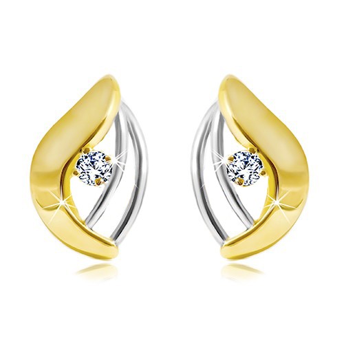 Náušnice ve 14K zlatě - čirý blýskavý zirkon ve dvoubarevné kapce