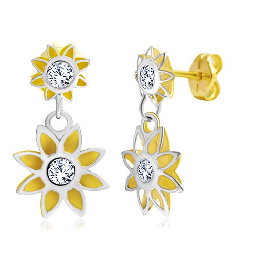 Náušnice ve 14K zlatě - dva vyřezávané kvítky, dvoubarevné provedení od Šperky Eshop - tento produkt prodáváme po slevě za 3 111 CZK. Zboží zařazené v našem katalogu vás nezklame. Populární nabídka se vrátila, balné a poštovné nehradíte u objednávek nad Kč. Už se těšíte na svoji objednávku?