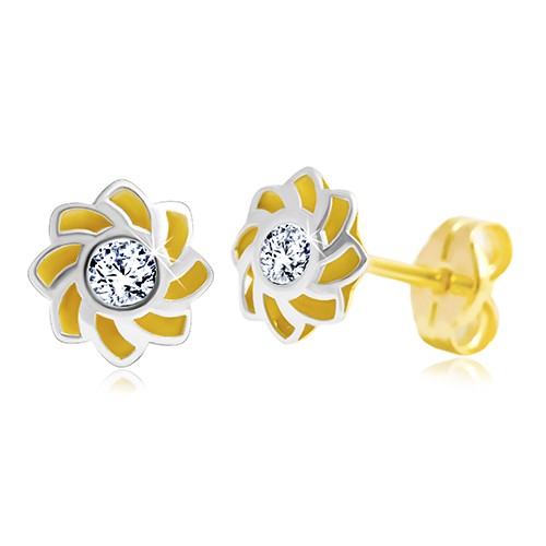 Náušnice ve 14K zlatě - kvítek se špičatými lupínky a zirkonem uprostřed
