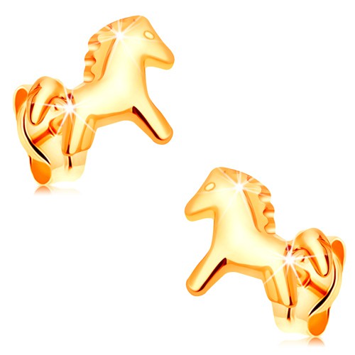 Popis produktu Náušnice ve žlutém 14K zlatě - blýskavý cválající koník, puzetové zapínání