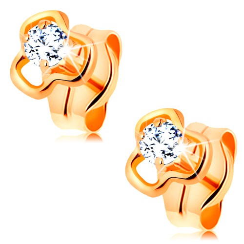 Perfektní Náušnice ve žlutém 14K zlatě - kulatý čirý zirkonek v kontuře trojlístku od firmy Šperky Eshop nyní za cenu 2 391 CZK Kč. Zobrazit více »