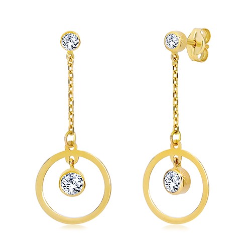 Náušnice ve žlutém zlatě 585 - kroužek se zirkonem visící na řetízku od známé značky Šperky Eshop - tento produkt prodáváme za výhodnou cenu 3 433 CZK. Neustále aktualizujeme ceny zboží a skladové dostupnosti. NEPLAŤTE DOPRAVNÉ A BALNÉ, nabídka platí pro objednávky v hodnotě nad korun. Udělejte si radost.