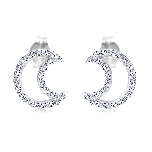 Náušnice z bílého 14K zlata - kontura měsíce vykládaná zirkony