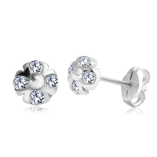 Popis produktu Náušnice z bílého zlata 585 - kvítek s čirými zirkony a kuličkou uprostřed