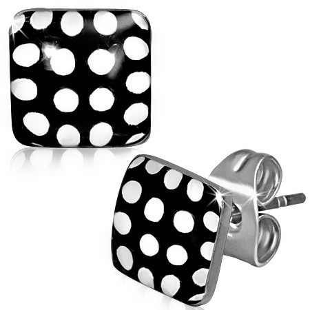 Popis produktu Náušnice z oceli, černobílé puntíkované čtverce