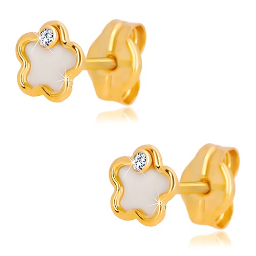 Popis produktu Náušnice ze 14K žlutého zlata - květ s přírodní perletí a zirkonem