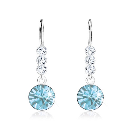 Visací náušnice, stříbro 925, kulatý krystal Swarovski ve světle modré barvě, linie čirých krystalků.Ceny a dodací lhůty tlačíme stále dolů. Už se těšíte na svoji objednávku?