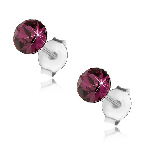Popis produktu Náušnice ze stříbra 925, kulatý Swarovského krystal fialové barvy, 5 mm