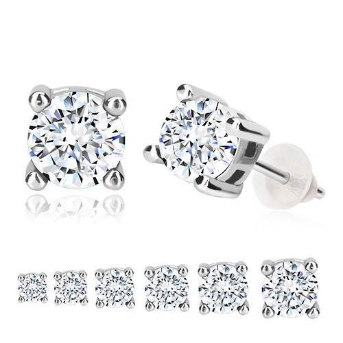 Popis produktu Náušnice ze stříbra 925, okrouhlý čirý kamínek v kotlíku - Velikost zirkonu: 3 mm