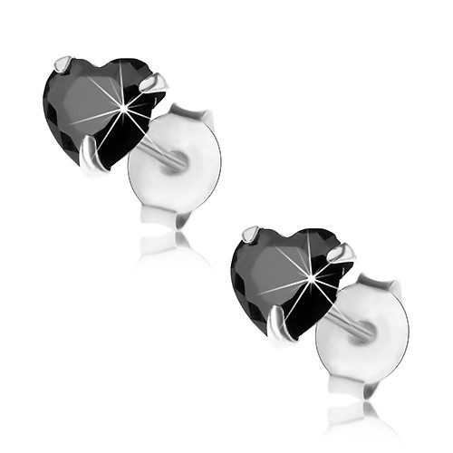 Popis produktu Náušnice ze stříbra 925, puzetky, černý broušený zirkon - srdíčko, 5 mm