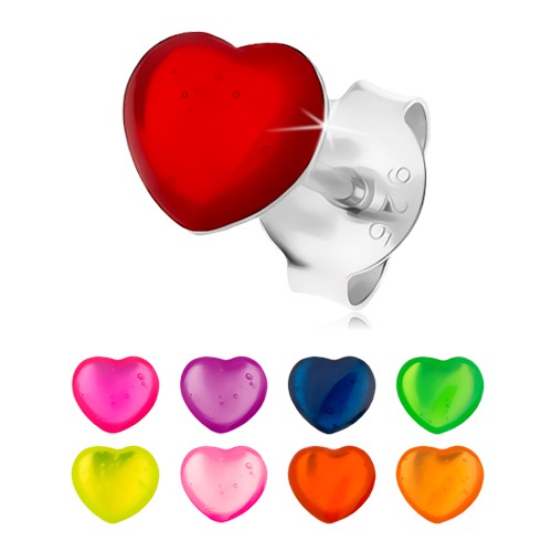 Stříbrné náušnice 925, symetrické a mírně vypouklé srdíčko pokryté glazurou v různých odstínech, puzetky.Nabídku e-shopu pro vás připravuje tým odborníků. Naše heslo: kvalita, výhodná cena, prozákaznický přístup.
